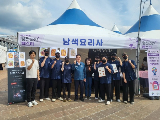 이미지 확대보기이날 청년마을 ‘취하리’가 청년 외식사업자 창업체험을 위해 마련한 행사에는 대구가톨릭대 조리학과 학생들이 함께해 와인 페어링 음식을 판매하는 ‘남색요리사’ 부스를 운영했다.