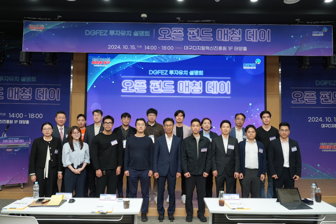 이미지 확대보기대구경북경제자유구역청(DGFEZ)은 15일, 수성알파시티 내 투자 유치를 위해 수도권 벤처캐피탈(VC)을 초청하여 1:1 오픈 펀드 매칭 데이를 개최했다. 이는 수성알파시티를 비수도권 최대 SW 집적단지로 만들고자 하는 대구시의 노력의 일환이다.