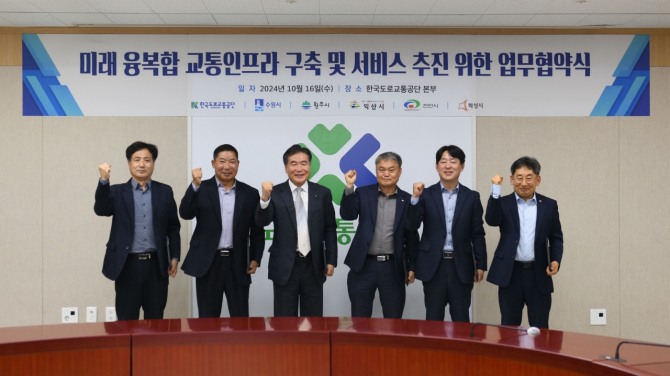 이미지 확대보기수원시와 원주·익산·천안·화성시 등 5개 지자체, 한국도로교통공단, 민간 내비게이션 업체는 16일 한국도로교통공단 대회의실에서 업무협약을 체결했다.