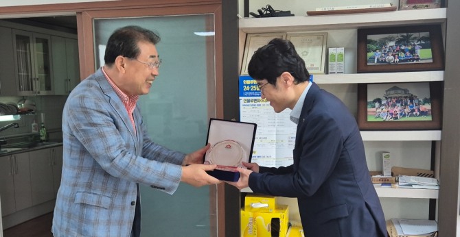 이미지 확대보기청룡마을, 환경대책위원회 등 관계자 5명은 '용인 반도체클러스터 일반산업단지' 보상 사업을 원활히 수행하고 주민의 애로 사항을 적극적으로 해결해줘 감사하다는 주민들의 뜻을 담아 감사패를 전달했다.