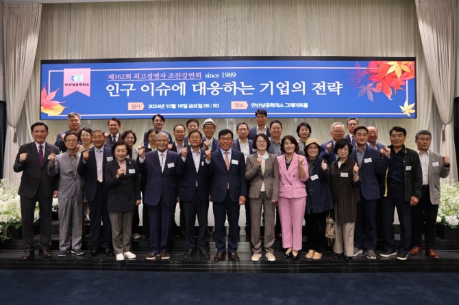 이미지 확대보기‘인구 이슈에 대응하는 기업의 전략’을 주제로 이인실 한반도미래인구연구원 원장을 초청한 이번 강연회에는 안산지역 기업인 및 유관기관장·단체장 등 120여 명이 참석했다.