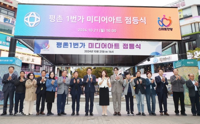 지난 21일에는 미디어아트가 설치된 평촌1번가 문화의 거리 분수대 앞에서 점등식이 개최돼 최대호 안양시장을 비롯한 관계 공무원, 국회의원, 시의원, 상인회 관계자 등 100여명이 참석했다.
