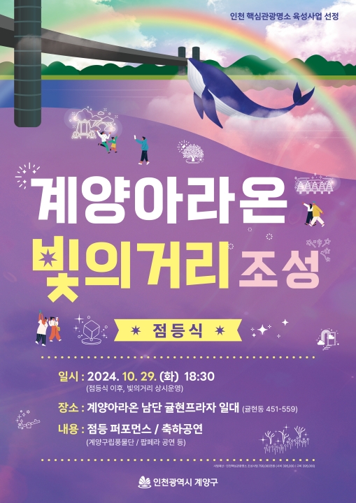이미지 확대보기인천광역시 계양구가 오는 29일 저녁 계양아라온 계양대교 남단 귤현프라자 일대에서 ‘계양아라온 빛의거리’ 2단계 조성 기념 점등식을 개최한다.