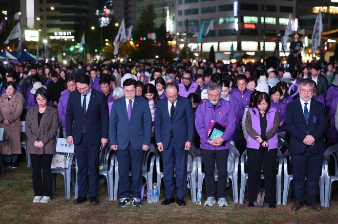 이미지 확대보기추경호 국민의힘 원내대표, 박찬대 더불어민주당 원내대표 등은 26일 중구 서울광장에서 열린 희생자 2주기 시민추모대회에 참석해 유가족을 위로하며 이같이 밝혔다.