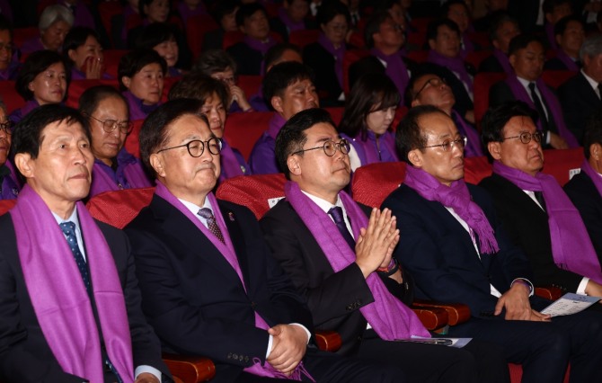 이미지 확대보기이날 국회 의원회관에서 열인 이태원 참사 2주기 추모제에는 희생자 유가족 120여 명과 국회의장을 포함한 여야 의원 60여 명이 참석했다.