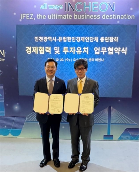 이와 더불어, 인천시는 10월 31일(현지시간) 유럽한인경제인단체총연합회 고광희 회장과 경제교류 협력 및 투자유치 활동 지원을 위한 업무협약(MOU)을 체결했다.