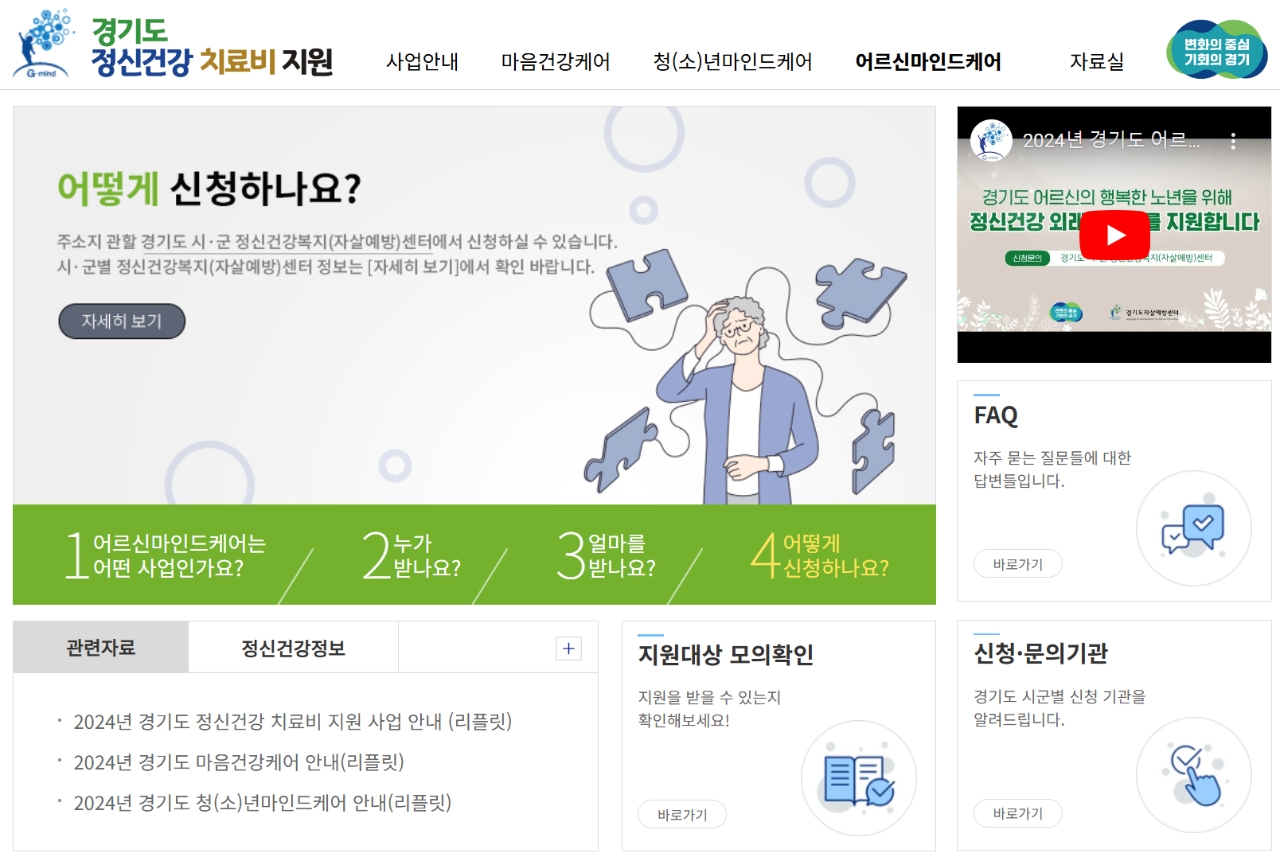 2013년부터 시작된 경기도 노인 우울증 치료비 지원사업은 경제적 어려움으로 우울증 치료를 받기 힘든 노인들에게 의료비를 지원해 지속적인 치료와 정신건강 관리가 가능하게 하는 데 중점을 두었다.