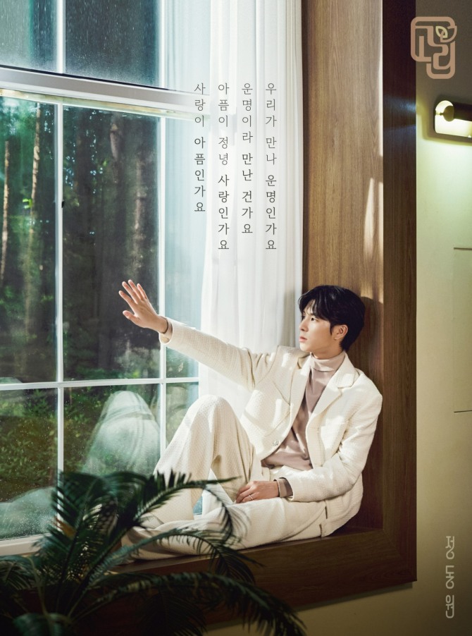 이미지에는 비가 오는 듯 물방울이 맺힌 풀숲이 비치는 창 옆으로 앉은 정동원의 모습이 보인다. 정동원은 창 위에 손을 포갠 채 어딘가를 바라보는 듯 아련한 눈빛으로 이목을 모았다.