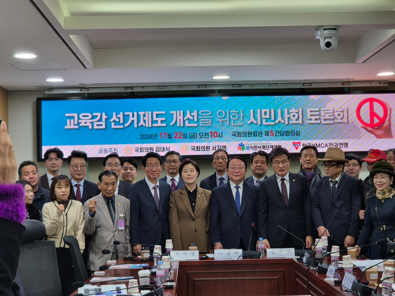 정승윤 국민권익위원회 부위원장은 “ 오랜 교수 생활을 통해 교육감 선거의 중대성을 인식해왔고, 교육감 선거제도 문제점에 대한 책을 저술하기도 했다. 현행 교육감 선거제도는 분명히 문제가 있다. 좋은 토론 있길 바란다”고 말했다. 한동훈 국민의힘 당대표 및 추경호 원내대표, 조정훈 국회 교육위원회 간사는 김영삼 전 대통령의 9주기 추모식에 참석해 서면으로 인사를 전했다.