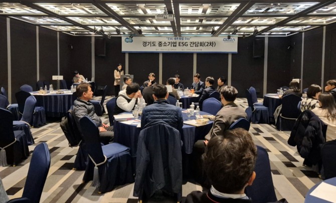 간담회에는 도내 중소기업 대표, 김길아 경과원 기업성장본부장, ESG 분야 담당자 등 70여명이 참석해 ESG경영 확산을 위한 도내 기업의 경쟁력 강화 방안을 집중적으로 논의했다.