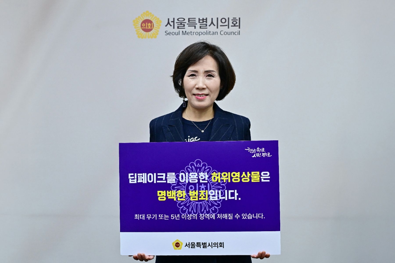 이 위원장은 ‘딥페이크를 이용한 허위영상물은 명백한 범죄입니다’와 ‘아이를 있는 그대로 존중 긍정양육’이라는 문구가 적힌 피켓을 들고 릴레이 캠페인에 함께했다.