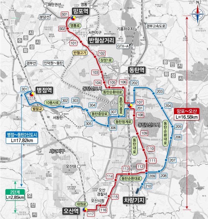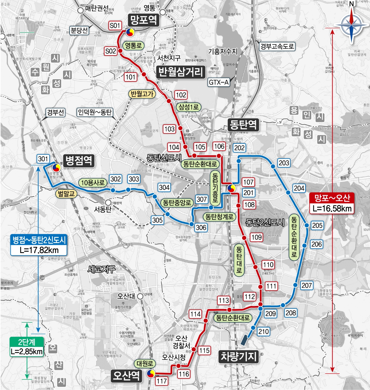이미지 확대보기동탄 도시철도 건설사업은 동탄2신도시 광역교통개선대책의 하나로, 화성·수원·오산시가 공동으로 총 연장 34.4km 구간에 도시철도를 건설하는 사업이다. 지난 2021년 경기도가 최초 기본계획을 수립한 이후 화성과 수원, 오산시가 사업을 추진하고 있다.