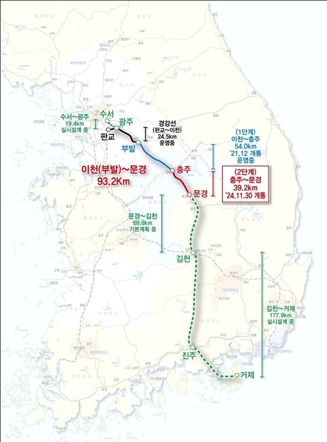 이미지 확대보기29일 성남시에 따르면 이번 개통 구간은 충주역과 문경역을 연결하는 총 39.2km의 신설 노선으로, 사업비는 1조 3386억원이 투입됐다.