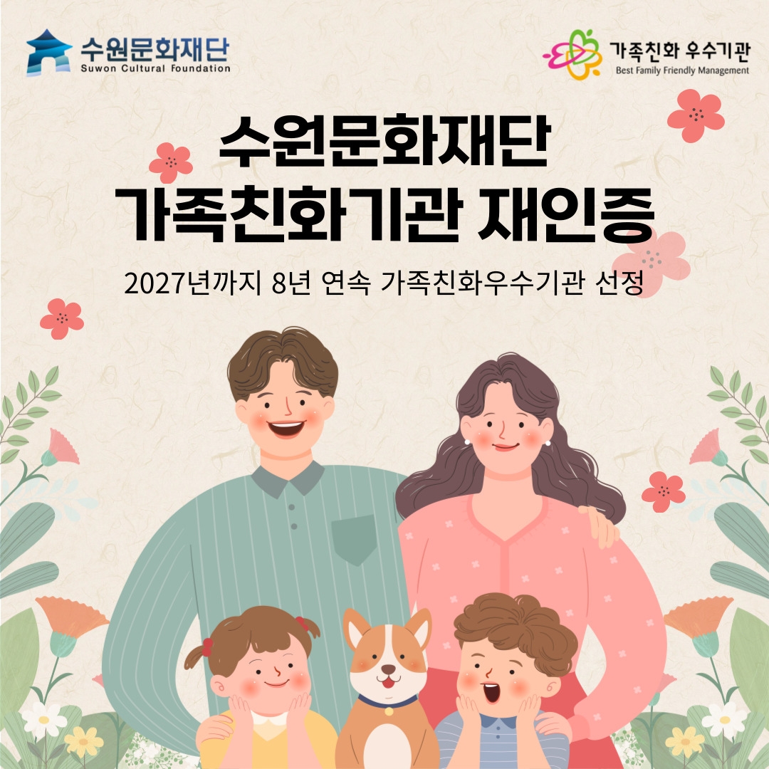 오영균 대표이사는 “직원들이 일과 가정생활을 조화롭게 병행하며, 균형 잡힌 워라밸을 실현할 수 있도록 최선을 다하겠다. 수원문화재단은 앞으로도 가족친화적 경영 문화를 강화하며, 지속적인 발전을 도모할 계획”이라고 밝혔다.