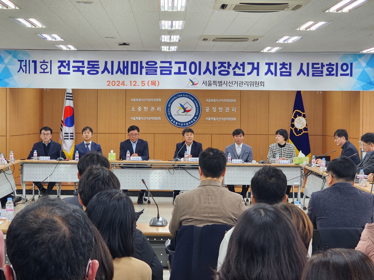 이미지 확대보기이날 서울시선관위 상임위원·사무처장·각 과장 및 25개 구선관위 사무국장 등 90여 명 등이 참석한 회의에서는 제1회 전국동시새마을금고이사장선거(이하 ‘동시이사장선거’)의 성공적 선거관리를 위해 선거관리방향을 공유하고 중점 강조사항 등을 전달했다.