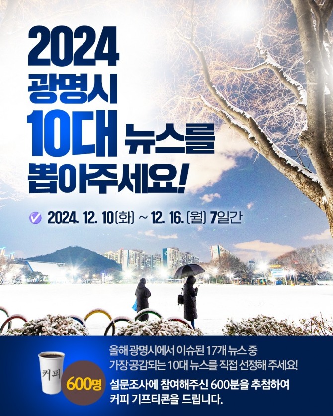 시는 지난 10일부터 16일까지 ‘2024년 광명시 10대 뉴스’ 온라인 설문조사를 진행한다고 밝혔다.