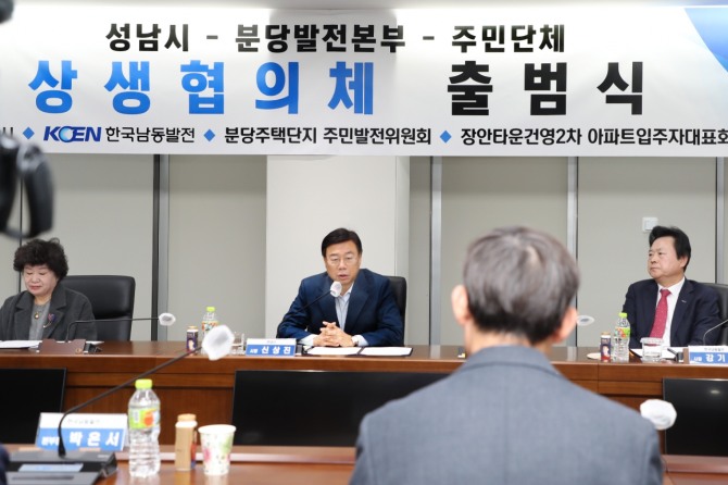 이날 협약식은 신상진 성남시장을 비롯해 강기윤 한국남동발전(주) 사장, 박선영 분당주택단지주민발전위원장, 김광배 건영2차아파트 입주자대표, 지역주민 등이 참석한 가운데 협약서 서명, 기념 촬영, 실무회의 등이 진행됐다.