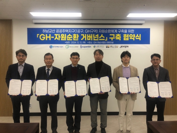 경기주택도시공사는 12일 GH 하남사업단 대회의실에서 하남교산 공공주택지구(1공구)의 폐기물 처리와 자원순환 체계 구축을 위한 ‘GH 자원순환 거버넌스’ 협약식과 발대식을 개최했다.