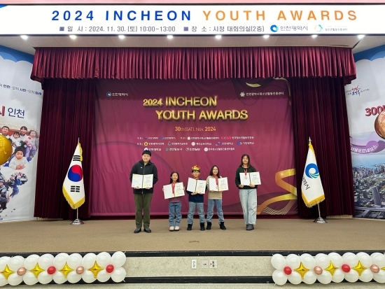 이미지 확대보기중구청소년수련관은 지난달 30일 인천시청 대회의실에서 열린 ‘제13회 인천 청소년 포상제 포상 수여식’에서 그간 활동을 인정받은 청소년 5명이 포상을 받았다고 밝혔다.