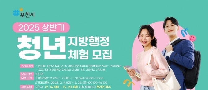 경기도 포천시(시장 백영현)가 오는 23일까지 2025년 상반기 청년 지방행정체험 참여자 100명을 모집한다고 17일 밝혔다.