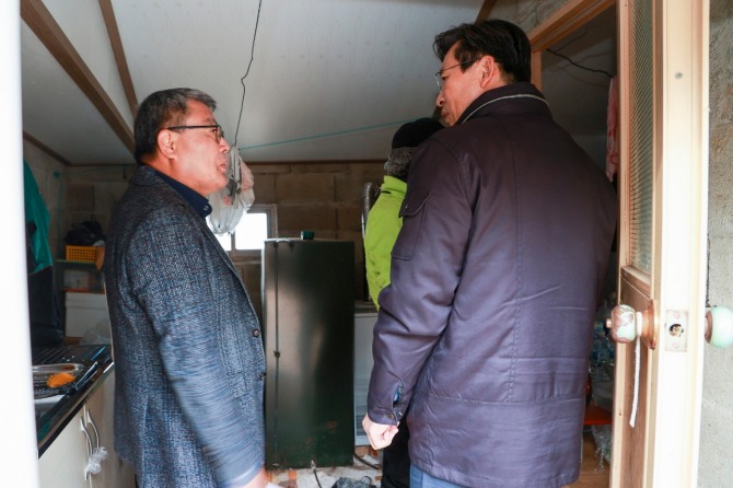 이미지 확대보기우승희 전남 영암군수가 13일 ‘겨울철 복지위기가구 발굴사업’으로 안정을 찾은 덕진면의 한 홀몸 어르신 가정을 방문해 위문했다.