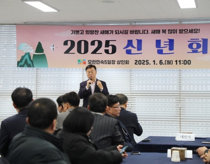 이미지 확대보기신 시장은 이 날 모란민속5일장 신년회에 참석해 “경기침체로 인해 상인들의 어려움이 큰 것을 알고 있다”며 이같이 말했다.