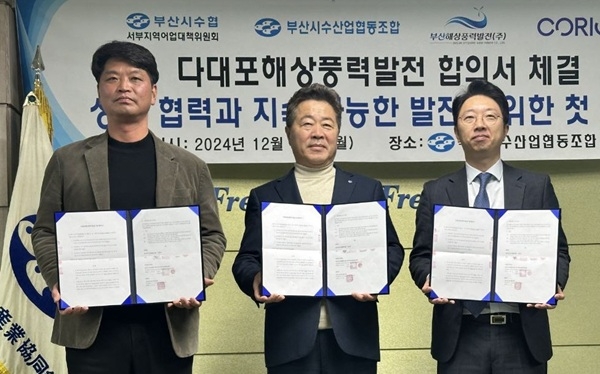 협약식은 부산시 수협 오성태 조합장, 서부지역어업대책위원회 오영건 위원장, 부산해상풍력발전㈜ 이동진 대표이사 등이 참석했다.