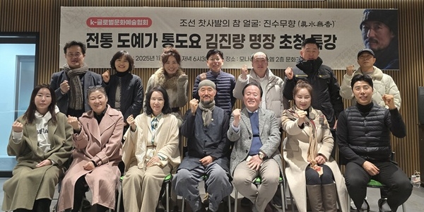 이미지 확대보기K-글로벌문화예술협회(이사장 박혜수, 이하 협회)는 지난 9일 경북 경산에 위치한 ㈜모나리자에스엠 본사 2층 문화교육실에서 도예가 김진량 명장 초청 특강을 개최했다고 13일 밝혔다.