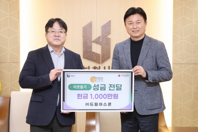 ㈜드림아스콘은 부천시 오정구 소재, 2000년부터 기업 ESG 활동의 일원으로 지역을 위해 꾸준히 나눔 활동을 하고 있으며, 현재까지 총 4700만 원의 이웃사랑을 실천했다. 이번 후원금은 부천시 사회공헌활동 지원 플랫폼인 ‘부천 온(溫)마음 펀드’에 적립하여, 도움이 필요한 취약 계층에게 소중히 활용될 예정이다.