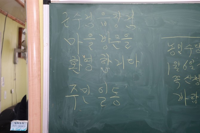 이미지 확대보기새해 인사를 곁들인 이번 경로당 순회 방문은 군정 설명이 주를 이루었던 기존 연두순시 행사와 달리 군수가 직접 마을회관(경로당)을 찾아가 소통함으로써, 현장감을 살리고 군민들의 이야기에 더욱 귀 기울이기 위해 기획됐다.