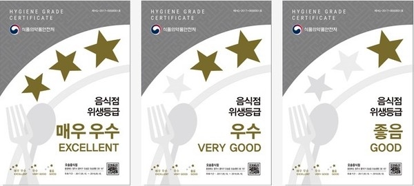 이미지 확대보기음식점 위생등급제 지정업소란 위생 관련 분야에 대해 식품의약품안전처의 평가를 받은 후 3단계 등급(매우 우수, 우수, 좋음)을 부여받은 음식점을 말한다.