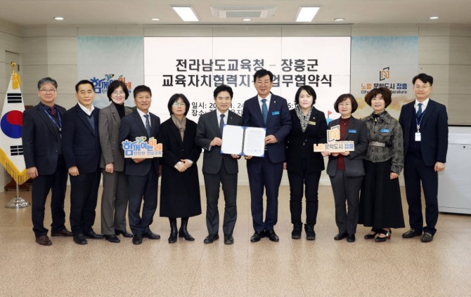 장흥군(군수 김성)과 전라남도교육청(교육감 김대중)은 지난 24일 장흥교육지원청 대회의실에서 교육자치협력지구 업무협약을 체결했다.