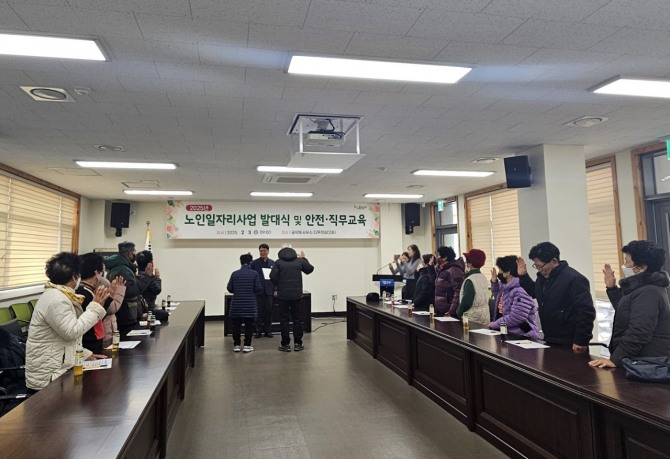 이미지 확대보기골약동(동장 박옥병)은 3일 다목적실에서 노인일자리사업 참여자 14명이 참석한 가운데 발대식을 개최하고 안전·직무 교육을 실시했다고 밝혔다.