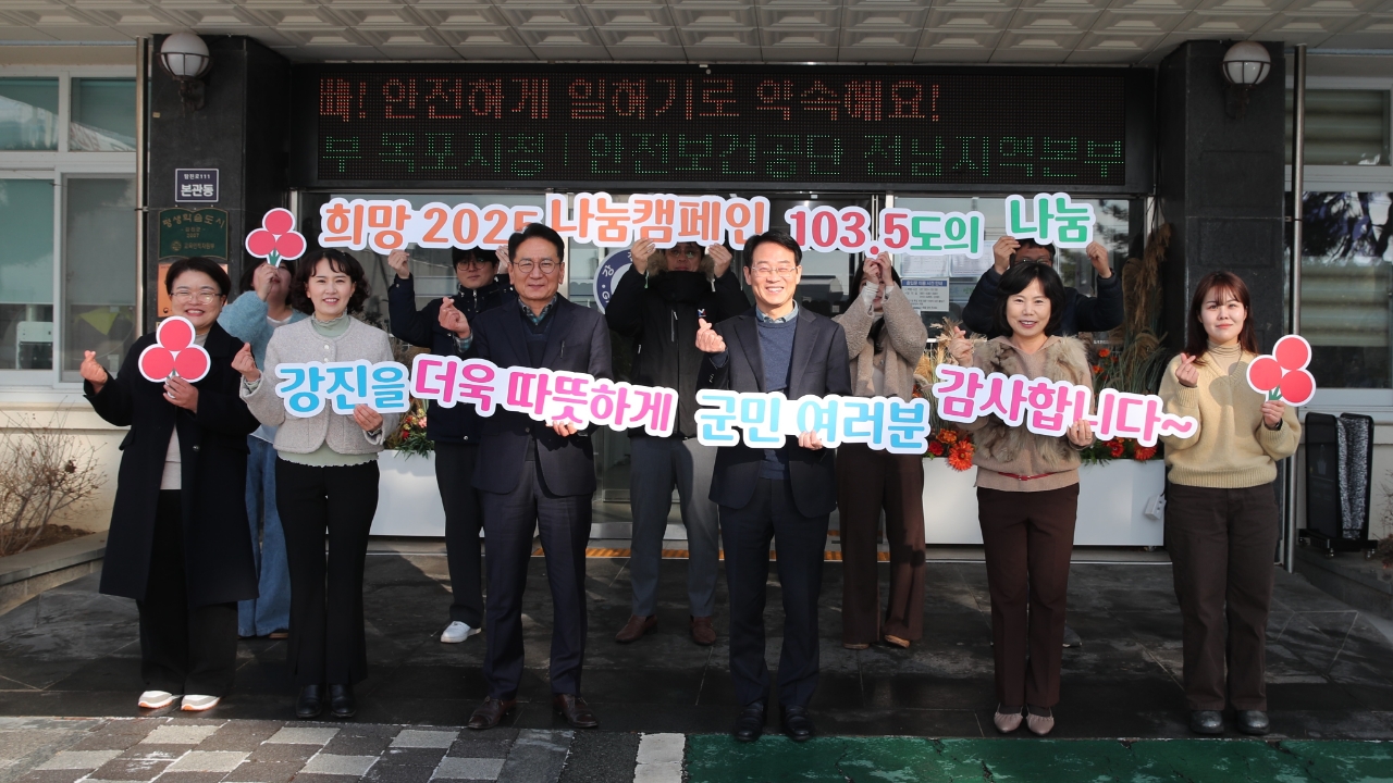 윤미경 주민복지과장은 “군민들의 따뜻한 관심과 동참이 강진군을 더욱 가치 있는 지역으로 만드는 원동력이 됐다”며 “앞으로도 더 많은 나눔이 확산될 수 있도록 노력하겠다”고 말했다.