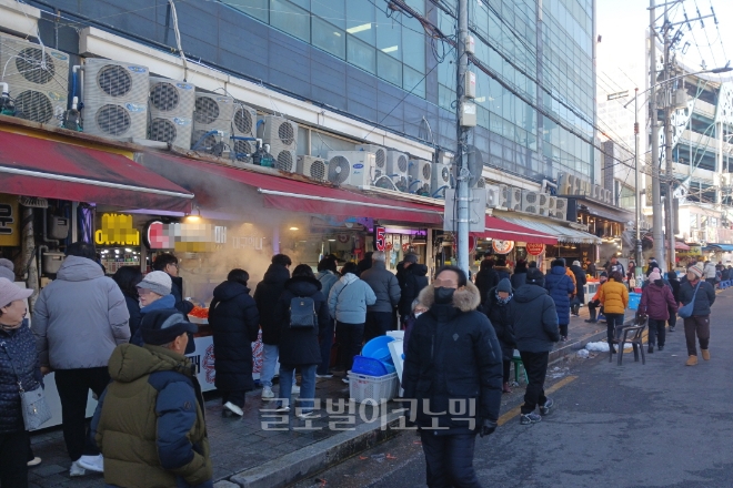 이미지 확대보기10일 포항시에 따르면 지난 주말 포항 죽도시장 내 대게·회타운 거리에는 제철을 맞은 과메기와 대게를 맛보기 위해 많은 인파가 몰렸다. 동시에 건어물과 수산물도 큰 인기를 얻으며 판매가 급증하고 있다.