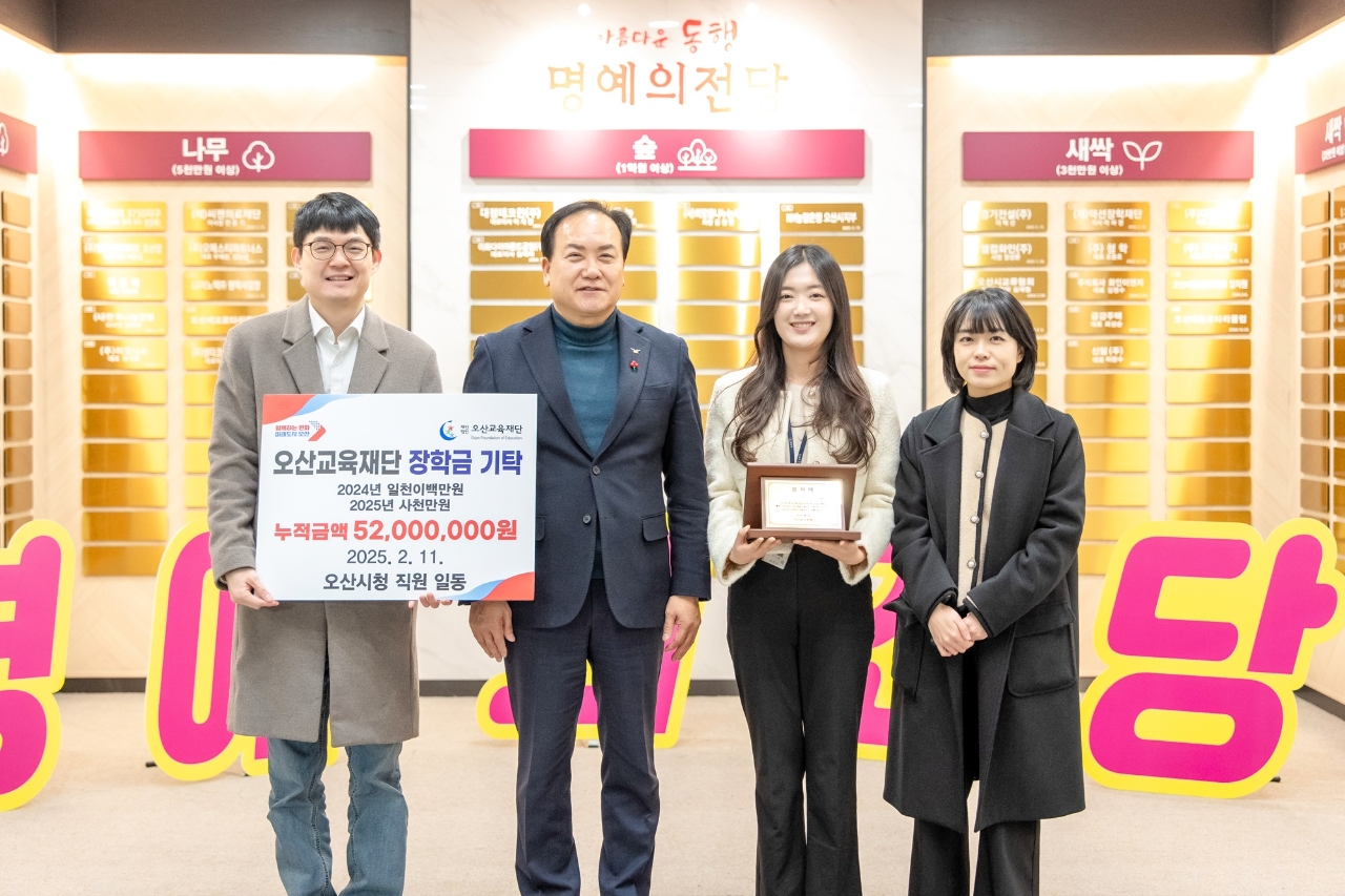 이번에 기부된 포상금은 오산시 교육재단이 운영하는 특기장학금으로 사용될 예정이다. 시는 문화·예술·체육·과학 등 각 분야에서 뛰어난 성과를 보인 학생들에게 매년 특기장학금을 전달하고 있다. 초·중·고등학생 60명과 대학 신입생 10명이 선발 대상이다.