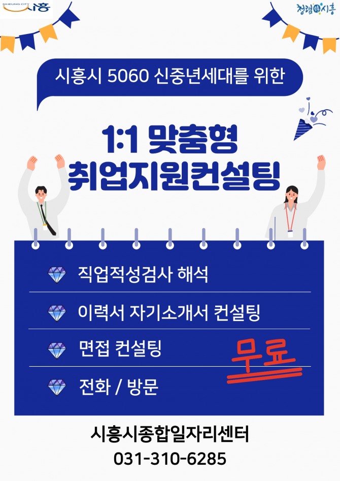 시흥시 5060 신중년 구직자라면 누구나 신청할 수 있으며, 참여를 희망하는 5060 신중년 구직자는 시흥종합일자리센터에 전화(031-310-6285) 및 방문 신청을 하면 된다.