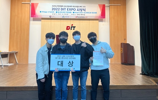 동의과학대학교 컴퓨터소프트웨어과 Binary 팀 학생들이 2022 DIT 캡스톤디자인경진대회에서 기념 촬영을 하고 있는 모습. 사진=동의과학대학교이미지 확대보기
