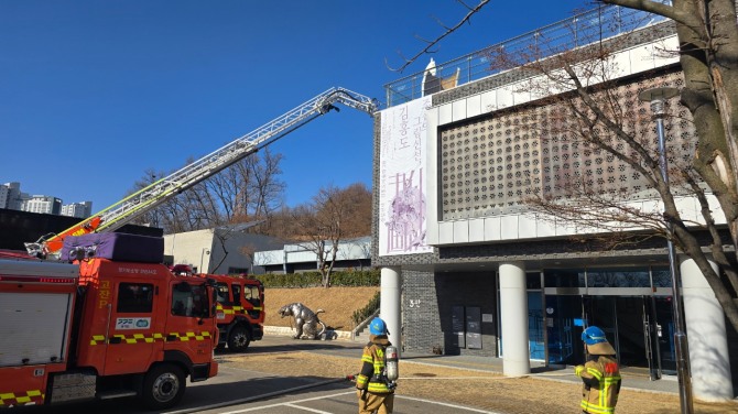 주요 훈련 내용으로는 △다수 인 피해 방지를 위한 관람객 대피 훈련 △미술관 특성에 맞춘 인명구조 훈련 및 사다리차 전개 훈련 △화재 진압 훈련 △소방 용수 공급훈련 △소장작품 반출훈련 등이 포함됐다.