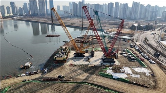 인천경제자유구역청은 4일 오전 6공구 호수에 5000마력급 대형 펌프준설선을 국내 최대 용량인 1300톤급 크레인 2대로 6공구 호수에 진수하여 본격적인 준설공사가 시작된다고 밝혔다.