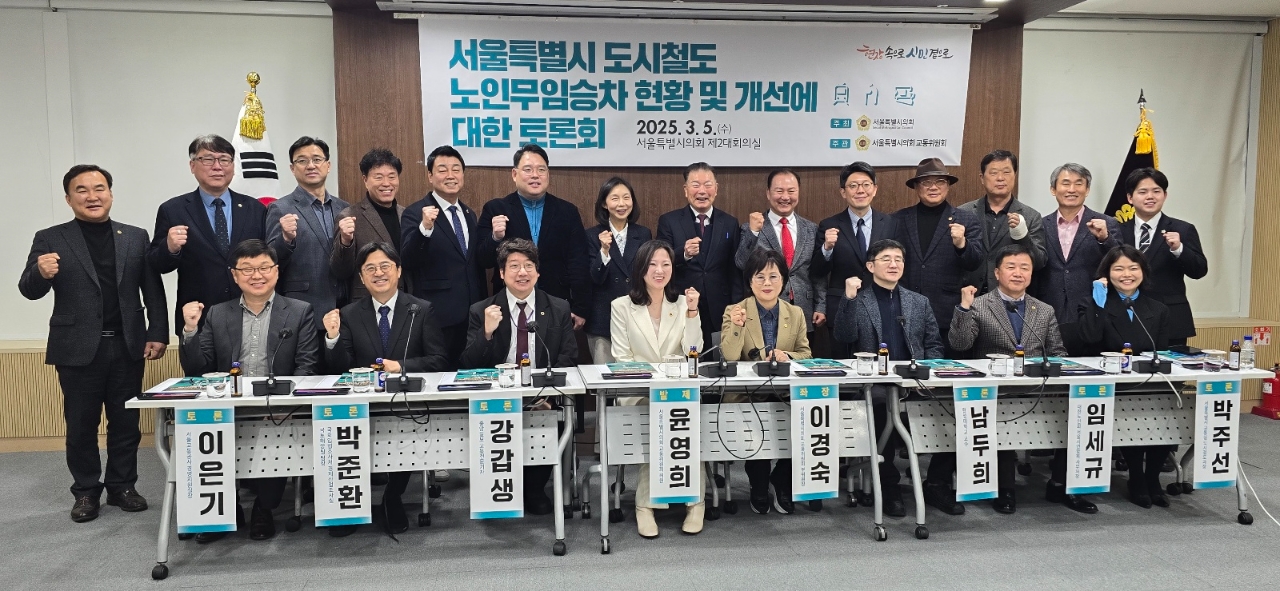좌장에는 이경숙 교통위원회 부위원장이 발제는 윤영희 교통위원회 의원이 맡았고, ▲남두희 한성대학교 교수, ▲강갑생 중앙일보 교통전문기자, ▲임세규 대한노인회 서울시연합회 사무처장, ▲박준환 국회입법조사처 경제산업조사실 국토해양팀 팀장, ▲박주선 서울시 교통실 도시철도과장, ▲이은기 서울교통공사 경영지원실장이 패널로 참여했다.