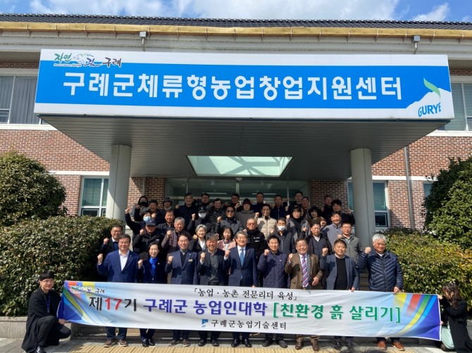 구례군 농업인대학 학장인 김순호 군수는 “농업인대학을 통해 흙의 소중한 가치를 되새기고, 흙 살리기 운동을 실천하는 선도농업인으로 구례 농업 발전의 주역이 되기를 바란다”라고 말했다.