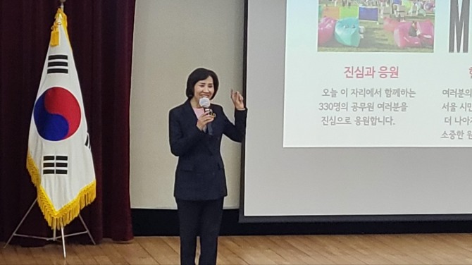 이날 이숙자 위원장은 특별 강연 강사로 참석해, “힘든 경쟁률을 뚫고, 공무원으로 입직한 한분 한분에게 축하의 말씀을 전하고 환영한다”며, “여기 모인 330명의 공무원분들이 앞으로 서울시의 행정을 책임질 중추적인 역할을 수행할 보석이자 보배같은 존재다”라며, 천만 서울시민을 위한 공무원으로 성장해 주길 바란다고 밝혔다.