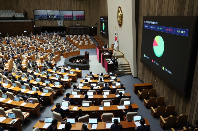 이미지 확대보기이날 국회 본회의에 상정된 국민연금법 개정안은 재석 277명 중 찬성 193명·반대 40명·기권 44명으로 통과됐다.