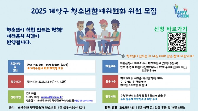 청소년들의 목소리를 정책으로! 2025년 계양구 청소년참여위원회 모집