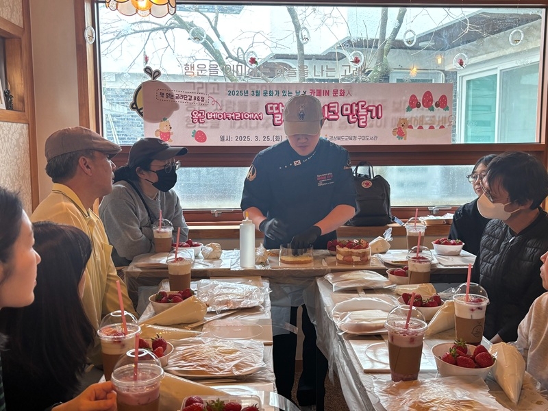 이미지 확대보기25일에는 ‘책 읽는 금리단길’ 협력 북카페 사장님이 일일 강사가 돼 해당 카페에서 문화 체험을 해보는 ‘카페IN 문화人’ 프로그램이 옹근베이커리에서 열려 참가자들이 직접 딸기케이크를 만들며 맛과 예술이 어우러진 시간을 가졌다.