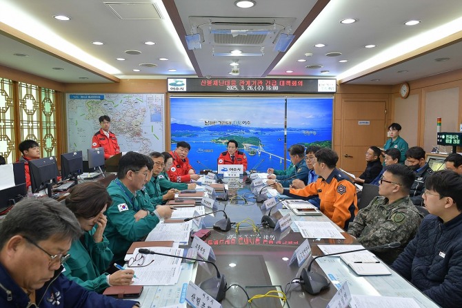 이미지 확대보기전남 여수시(시장 정기명)는 산불재난 국가위기경보 수준이 ‘심각’ 단계로 격상됨에 따라 26일 시청 재난안전상황실에서 관계기관 긴급 대책회의를 열고 산불 감시·대응 상황을 점검했다.