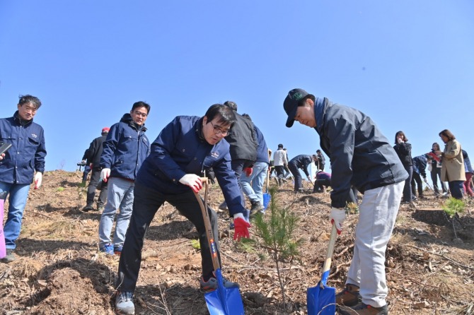 이미지 확대보기김 지사는 이날 행사에서 김동일 보령시장, 안병기 중부지방산림청장, 도민 등 500여 명과 스트로브잣나무 4500그루를 식재했다.