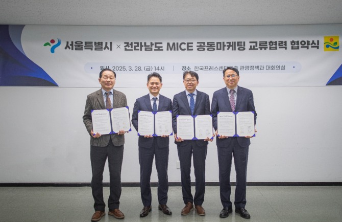 이미지 확대보기서울시와 서울관광재단(대표이사 길기연)은 전라남도, 전남관광재단과 ‘MICE 공동마케팅 교류협력 ’4자 업무협약(MOU)을 지난 28일 오후 2시 한국프레스센터 5층 관광체육국 대회의실에서 체결했다고 31일 전했다.