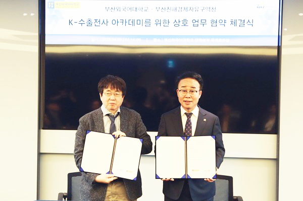 부산외대는 중소벤처기업부의 ‘K-수출전사 아카데미’ 운영기관으로 선정되었으며 이를 계기로 부산진해경제자유구역의 수출기업과 부산외대의 외국인 유학생 간 인재 매칭을 통해 취업 연계를 통한 동반 성장을 기대하고 있다.